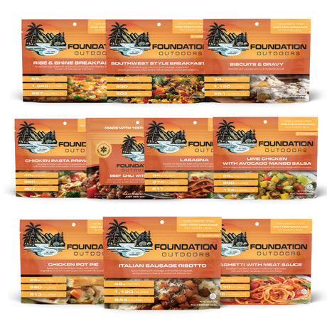 FOUNDATION Outdoors meals were scientifically designed to provide your body with the quality calories you need for the backcountry. Our meals:
